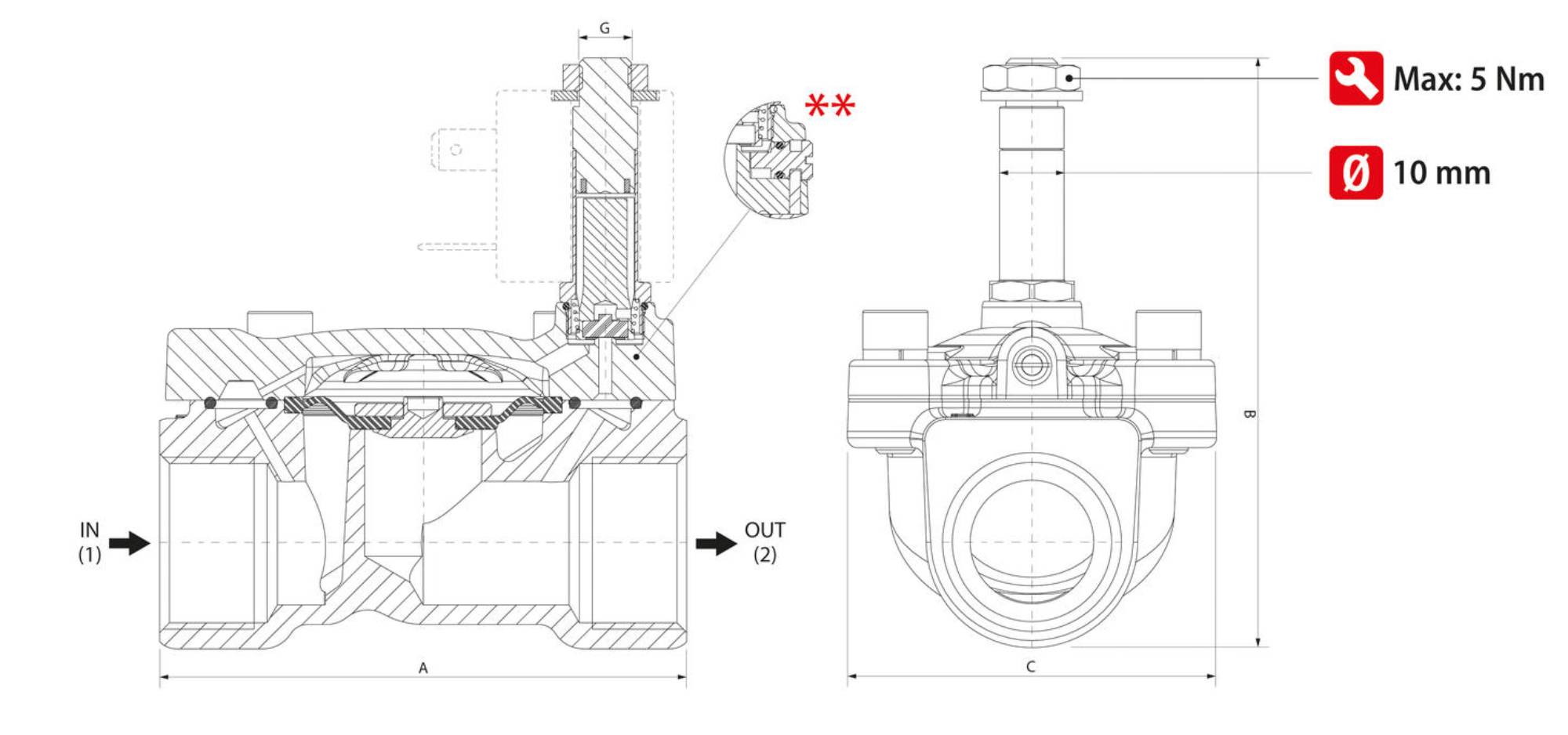Ventil el.mag. 2/2 3/4"N.C. 0,15-25bar AIGNEP